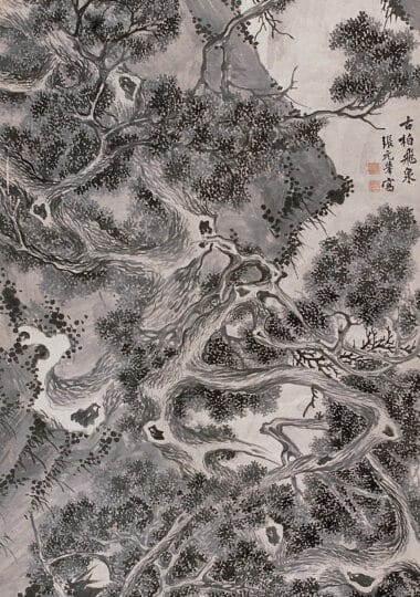 Ancient Cypress and Cascading Springs《古柏飞泉图轴》