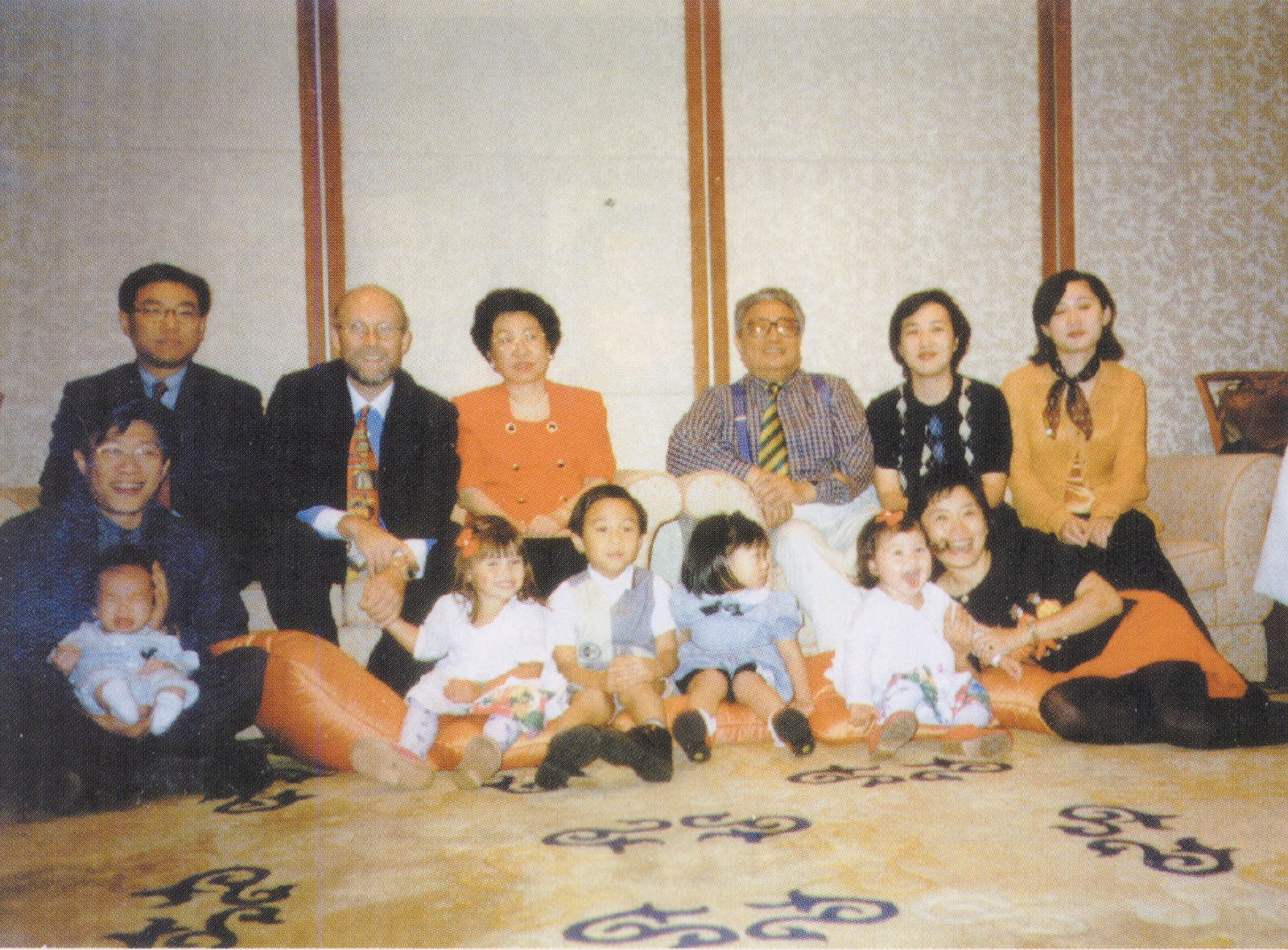 Family portrait of Liu Hanliang. In the back row, from left to right: Liu Hanliang’s eldest son, Liu Xuejin, Michael Nock, Liu Hanliang’s wife, Wang Tsuifeng, Liu Hanliang, Kwok Veng Sam, Lucy Liu. In the front row, from left to right: Liu Hanliang’s youngest son, James Liu, accompanied by Liu Hanliang’s grandchildren (Howard Liu, Camille Nock, Jason Liu, Janet Liu, Lucy Liu) and Liu Hanliang’s daughter, Nancy Liu.