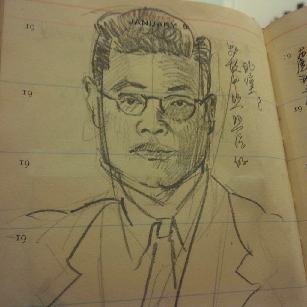 A self-portrait of Liu Hanliang, drawn into his personal diary