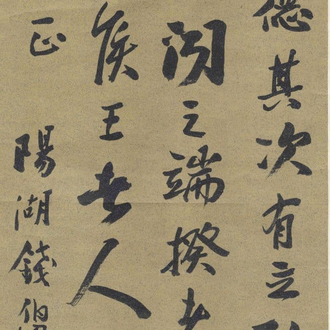Qian Bokeng, courtesy name Lusi, pseudonyms Yupei and Pushe Shanqiao, was the nephew of the zhuangyuan (top scholar) and poet-painter Qian Weicheng, from Yanghu (present-day Changzhou), Jiangsu. He studied under Liu Da'an of the Tongcheng School and was a scholar at the Imperial Academy. Qian Bokeng was skilled in calligraphy, following the styles of Dong Qichang and Huang Tingjian, and tracing back to Li Yong and Yan Zhenqing, earning high regard at the time.