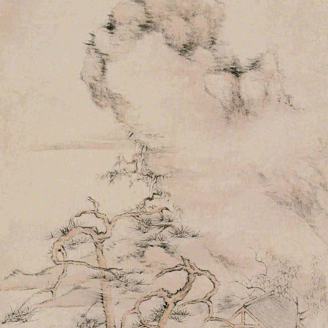 This painting was created during the Jiaxing Renshen Sacrifice Day (1813 in the Gregorian calendar) when Tang Yifen was serving as the Commandant of Qichang in Guangdong, at the age of thirty-seven. The painting bears the horizontal inscription ""Iron Flute Tower"" in clerical script, and below it, a long colophon in running-cursive script. The colophon recounts how Lu Feng's third brother in Beijing obtained an ancient iron flute of unknown origin, treasured for its resonant sound. He wished to name a tower after it and asked Tang Yifen to create this painting, followed by a long poem in the gehang style. The full content is recorded in volume seven of the ""Qinyin Garden Collection"" under the title ""Iron Flute Song for Commandant Luo Lufeng (Jiang),"" indicating that the recipient of the painting was Commandant Luo Jiang. The two texts have minor differences, suggesting later revisions in the published collection. The painting features fine and dry brushstrokes with light ink evenly applied, achieving a simple yet profound artistic effect. It is considered one of Tang Yifen's early masterpieces using the dry brush technique.