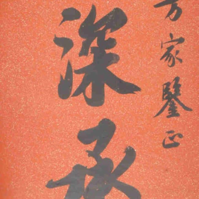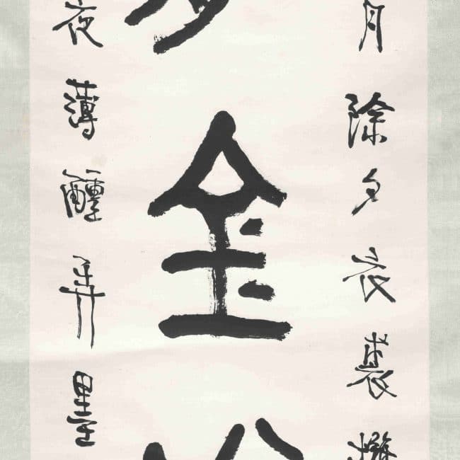 Translation of couplet: "In the study, the simplicity of the historiographer's bamboo slips, Like the pen of Dong Hu of Jin."