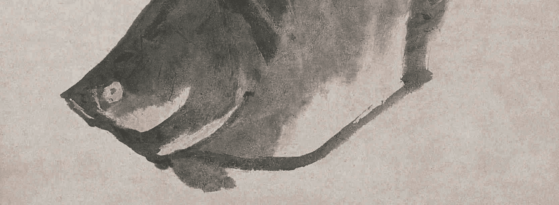 This painting of a mandarin fish exemplifies Zhu Da’s mastery of simplicity and vitality. Though minimal in composition, the fish comes to life through bold and expressive brushstrokes, rich tonal gradations of ink, and an engagingly vivid form. The work’s conciseness highlights Zhu Da’s ability to distill the essence of his subjects into striking visual poetry.