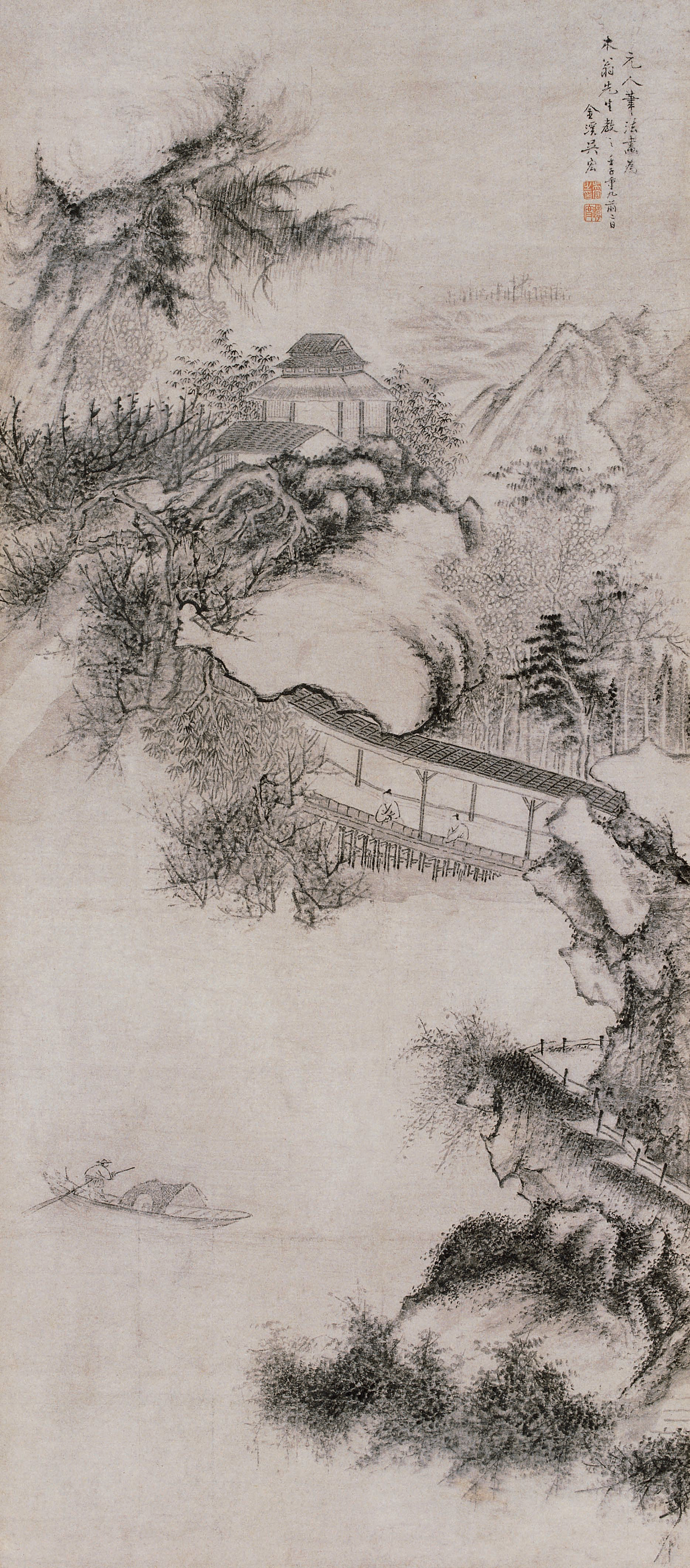 吴宏(1615~1680),宏,一作弘,字远度,号竹史。江西金谿人,寓江苏江宁(今南京)。清初著名画家。自幼好绘事,自辟蹊径。顺治十年(1653年)曾渡黄河,游雪苑,归而笔墨一变,纵横放逸。与龚贤、高岑、樊圻、邹喆、叶欣、胡慥、谢荪合称为“金陵八家”,在八家中画风最为粗放,浑融无际,任凭想象。