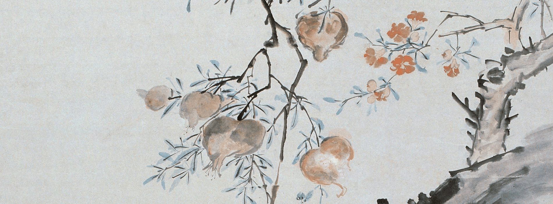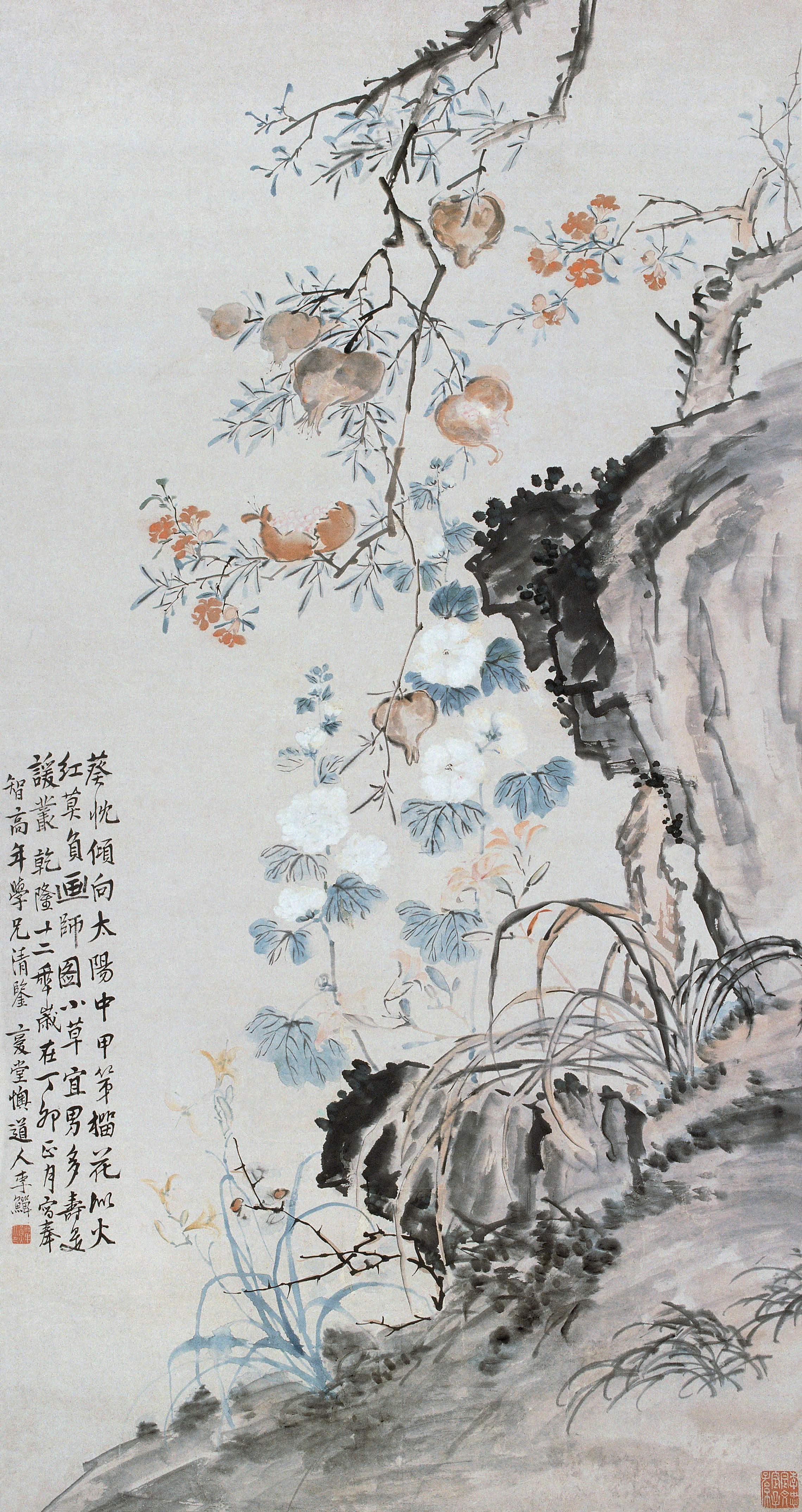 Pomegranate and Hollyhocks《石榴蜀葵图轴》
