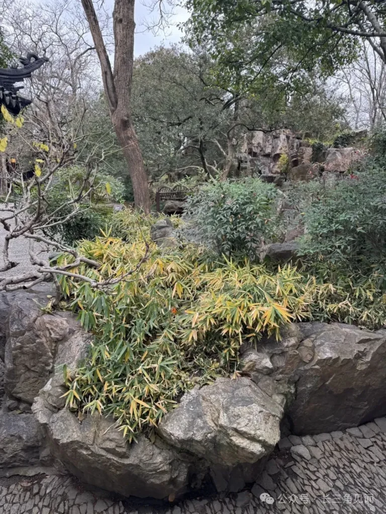 Bamboo is planted within the crevices formed by encircling yellow rocks, its softness set against the rocks’ hardness. This recreates the natural mountain scene of “bamboo and stone thriving together.” It exemplifies the Jiangnan garden technique of “condensing grandeur into small scale” in rockery construction.