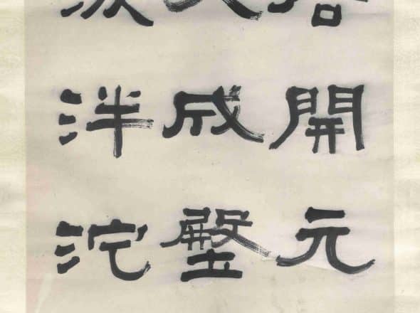 This set of four panels in clerical script showcases an extraordinary depth of power, with each stroke penetrating to the back of the paper and exuding a profound sense of antiquity. The brushwork is fluid and expansive, imbued with a dynamic rhythm that resembles birds in flight, full of vitality and grandeur. It exemplifies Zhang's mastery, embodying the phrase “heavenly essence unfolding, with force and charm in full measure.” It is no wonder that critics regard Zhang Zuyi as the foremost practitioner of clerical script after Yang Xian.