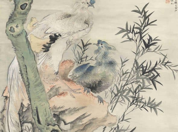 "Harmony of Phoenixes" symbolizes the harmonious relationship between a husband and wife through the imagery of the phoenix and the luan bird singing in unison. This painting is a tribute to the style of Hua Yan, showcasing elegant brushstrokes and warm, refined coloring. The inscriptions demonstrate Lu Hui's exceptional skill in calligraphy, enhancing the overall artistic impact. Created during his middle years, this work reflects his meticulous attention and is regarded as a high-level achievement in his artistic career.