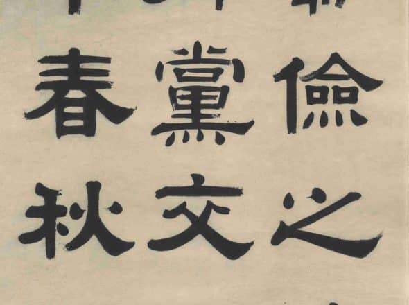 Yi Lixun's most accomplished work was in the clerical script of the Han dynasty. His clerical script inherited the refined and ancient style of his ancestor Yi Bingshou, with a composed and leisurely demeanor, displaying a sense of liveliness and charm within a strict and simple framework. In the aesthetic appeal of form, his brushwork conveyed a sense of depth and excellence. However, compared to Yi Bingshou, Yi Lixun's work could be overly meticulous, sometimes exhibiting a sense of craftsmanship, and lacked the grandeur and depth of his ancestor. His work can be considered to be of the "competent grade." The "Yin Zhou Stele" originally featured a tightened center and extended strokes, but Yi Lixun's rendition contracted the originally extended strokes, resulting in a more solid and robust style, representing a unique interpretation.