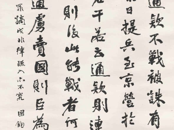 Jing Hengyi was deeply influenced by the Stele School of thought, focusing on clerical script in his calligraphy, particularly favoring the "two types of Cuan." This work, created in the "Cuan style" of large characters, features slow and substantial lines, blending a sense of grandeur with elegance, showcasing his exceptional skill.